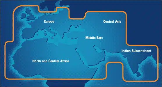 Thuraya provides coverage to some 99 countries in Europe, the Middle East, North and Central Africa, the Indian Subcontinent and Central Asia. Service is provided through dynamic dual mode handsets and satellite payphones. Subscribers access Thuraya's mobile satellite system through national mobile networks, and Thuraya’s system whenever their preferred national network is out of reach. The Primary Gateway is located in Sharjah, UAE serving the entire Thuraya coverage area. Other gateways will be established as necessary.